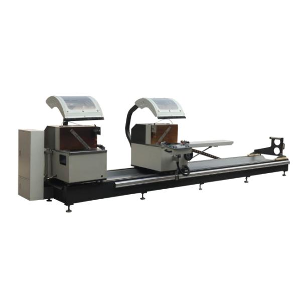 This machine is used for cutting aluminum alloy doors and windows, aluminum curtain walls and industrial aluminum cutting. The moving head adopts Taiwan high-precision linear guides, and the direct-connected spindle motor directly installs the saw blade to reduce the impact of belt rotation on cutting accuracy and ensure processing accuracy. Operational stability. In order to have higher cutting angle accuracy, the two machine heads are only used for fixed 45-degree angle cutting, with automatic height measuring device, no need to manually input the height of the material, the machine runs stably, and the operation is simple and convenient, which is ideal for improving production efficiency. product